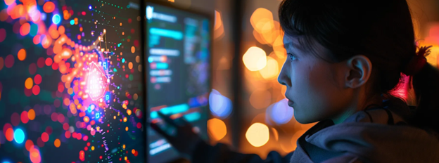 Alt text: Digital network lines and computer interface, showing what is AI knowledge management for advanced information retrieval.